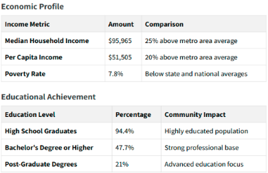homeownership rate stands at 64%, reflecting the community’s stability and long-term