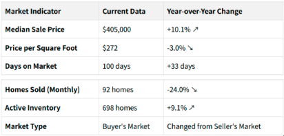 - Buyer’s Market Conditions: Homes receive an average of 1 offer and sell in around 100 days